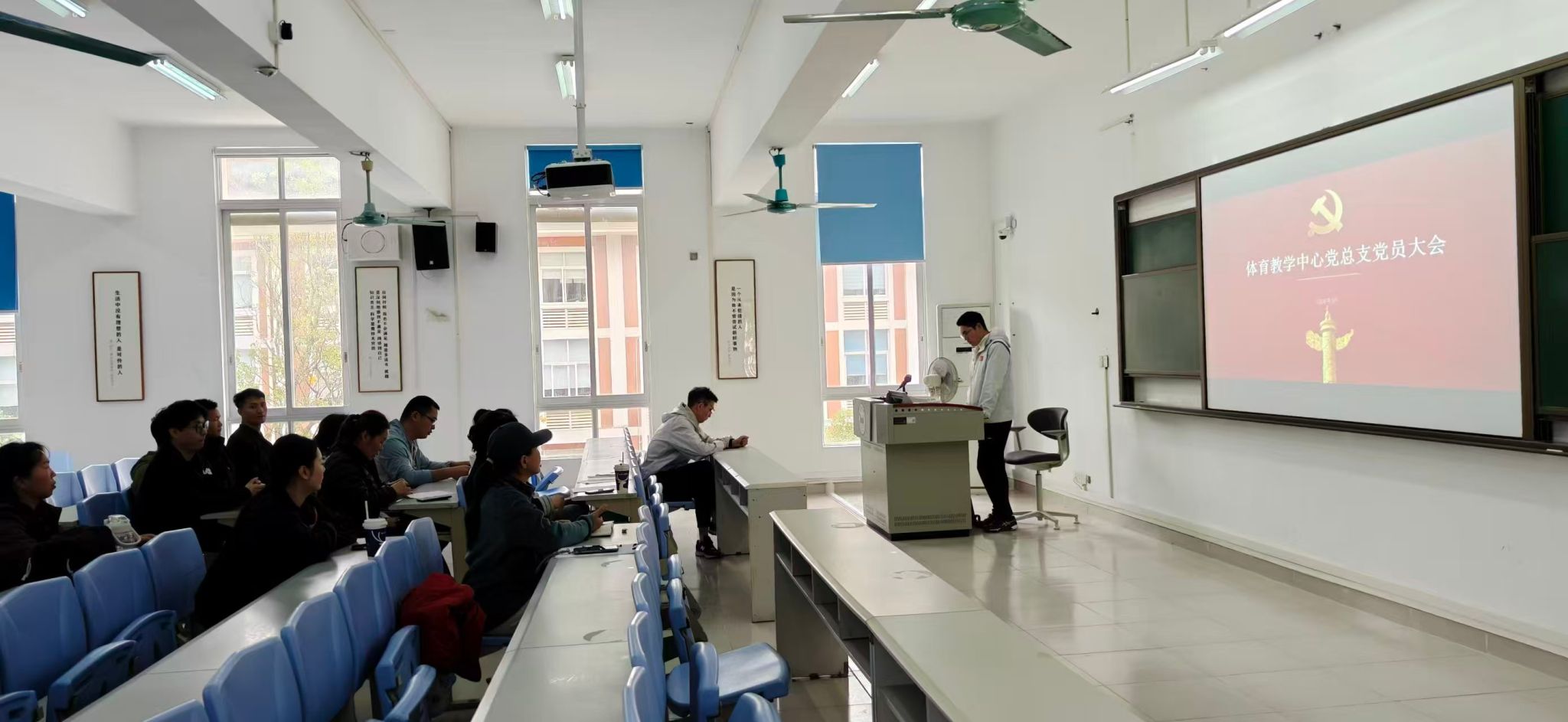 会后,体育教学中心各支部委员会及党员大会也在5教304召开。